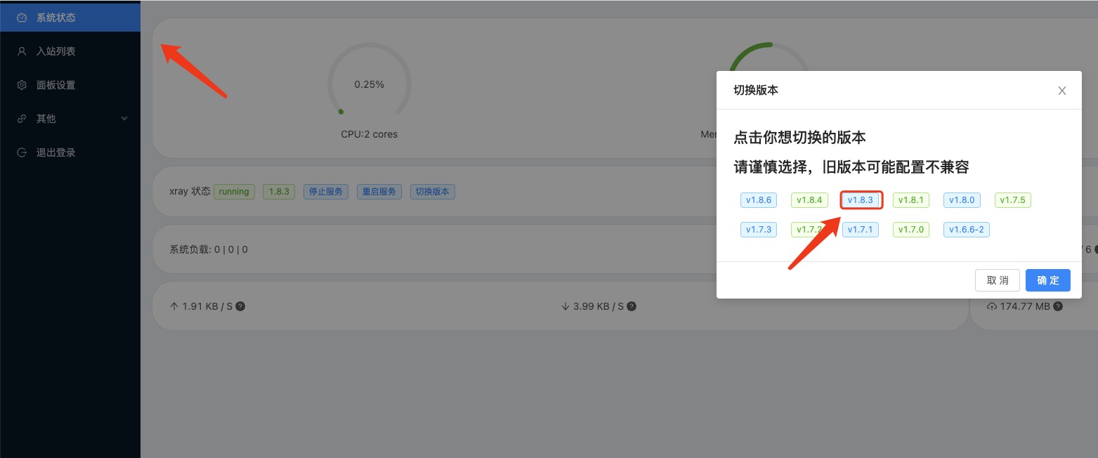 然后用前面设置的用户名和密码登录,进入系统推荐切换到v1.8.3版本