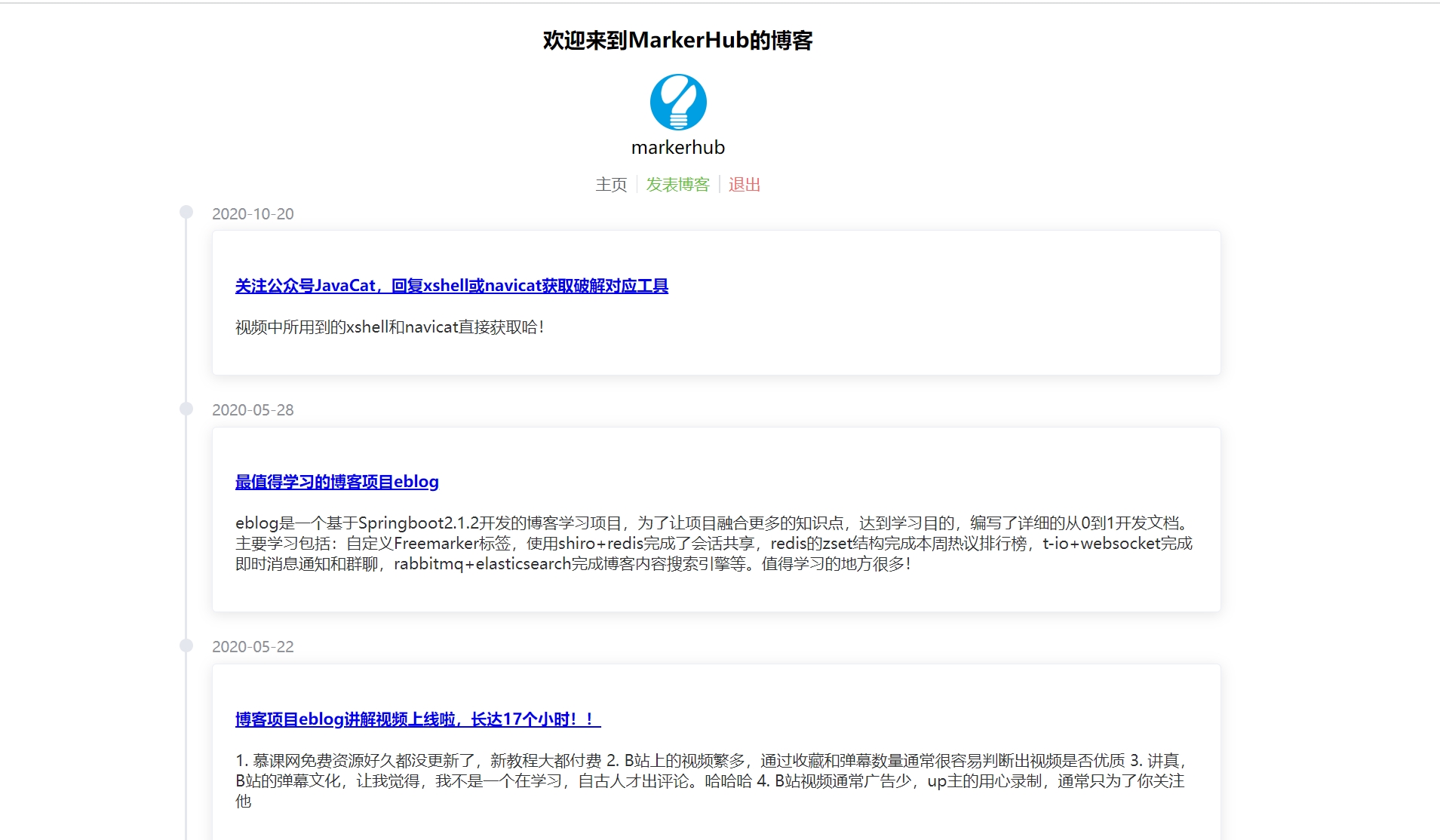 部署项目:https://github.com/MarkerHub/vueblog (opens new window)