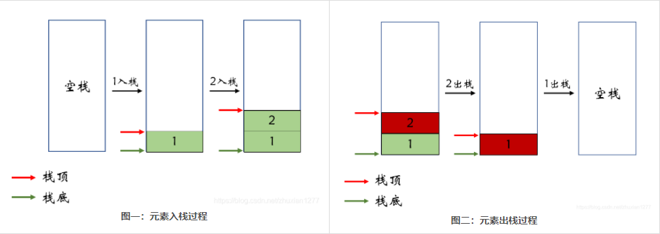 根据栈的定义可知,最先放入栈中元素在栈底,最后放入的元素在栈顶,而删除元素刚好相反,最后放入的元素最先删除,最先放入的元素最后删除