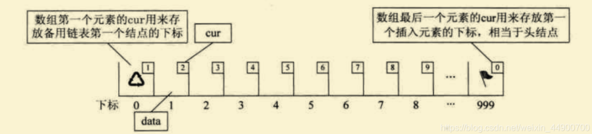 space[MAXSIZE-1].cur = 0; //目前静态链表为空,最后一个元素的cur为0